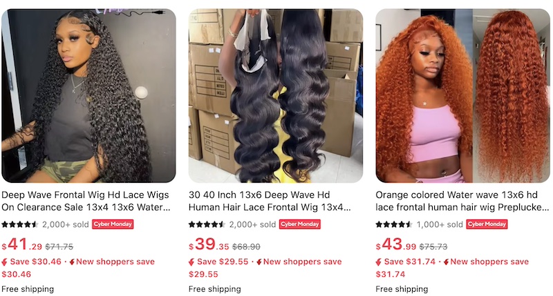6-Month Sales: 8,000+ wigs sold (strong demand for curly hair))