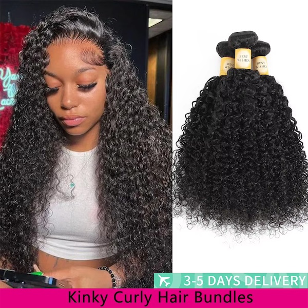 #5  12A Kinky Curly Human Hair Bundles (Natural Black)